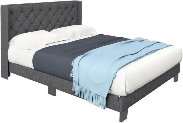 SlickBlue Twin/Full/Queen Size Upholstered Platform Bed with Button Tufted Headboard