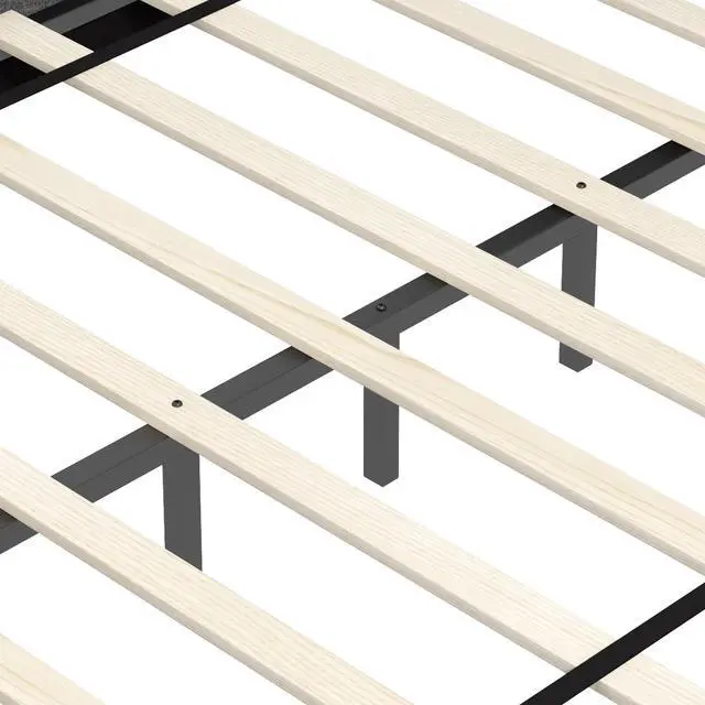 Solid Wooden Slats Support: This bed frame is crafted of 10 solid wooden slats that combine good toughness and bent resistant, which can support up to 400 lbs. Additionally, 6/7 sturdy middle metal legs are fitted with adjustable foot pads for reliable support and higher stability.