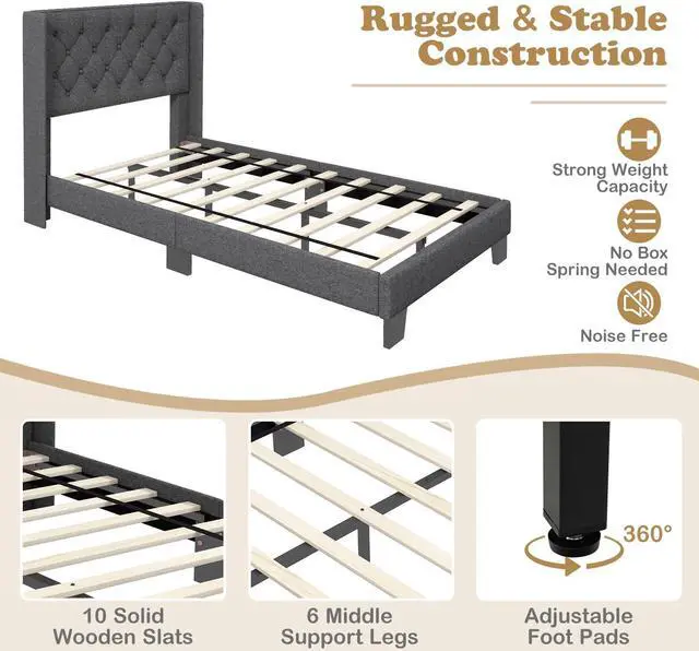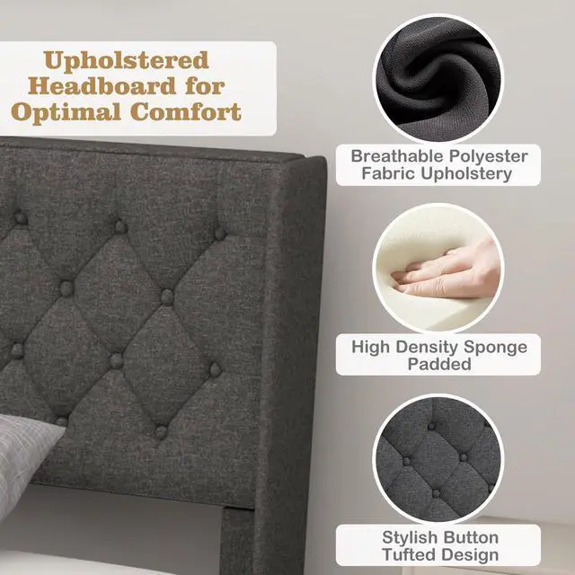 Upholstered Headboard for Comfort: The upholstered headboard is filled with high density sponge, providing good softness to support your body to lean on it with relaxation. Together with breathable polyester fabric upholstery, the headboard adds more comfort.
