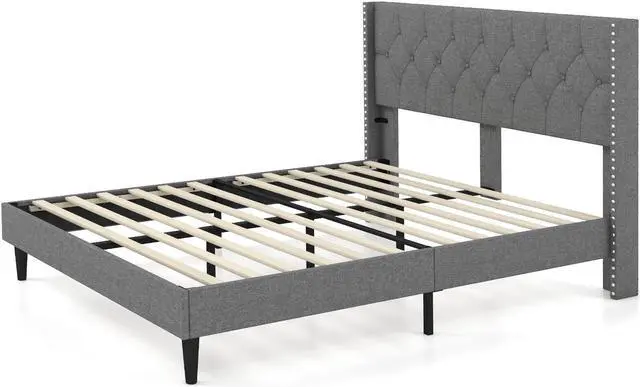 -Stylish button tufted and rivet design adds charm to the headboard