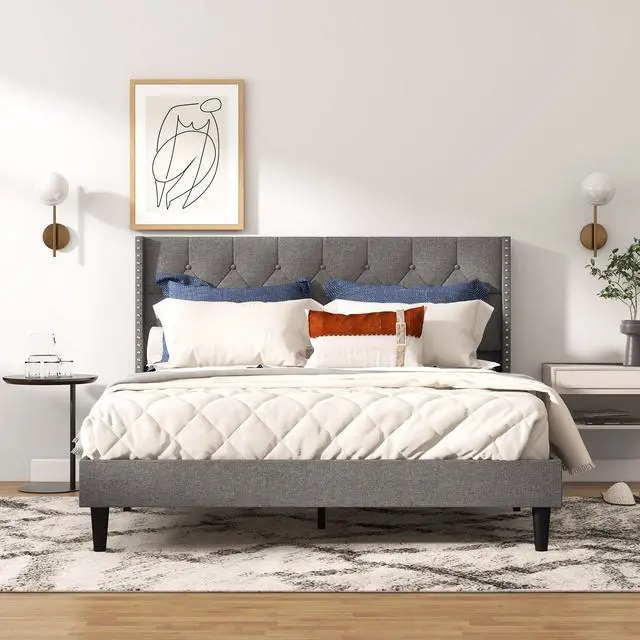 Unique and Aesthetic Appearance: Classic nailhead trim, rhombus pattern and tufted button add upscale aesthetic and deliver perfect visual effect, making up an elegant and understated appearance. Bring this bed home which strikes balance between functionality and stylish design.