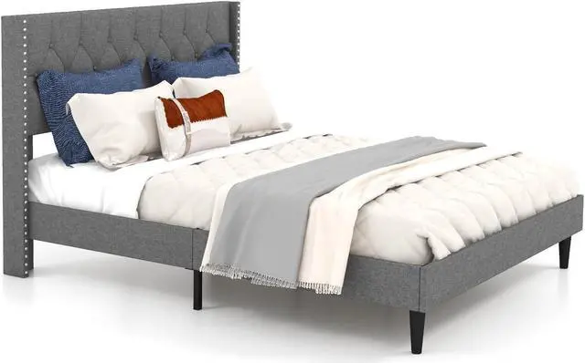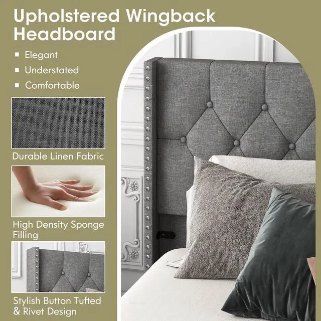 Upholstered Wingback Headboard: The headboard is wrapped in durable linen fabric and high density sponge filling, which better supports your waist and shoulder. The upholstered headboard allows you have a super comfortable experience when leaning back.
