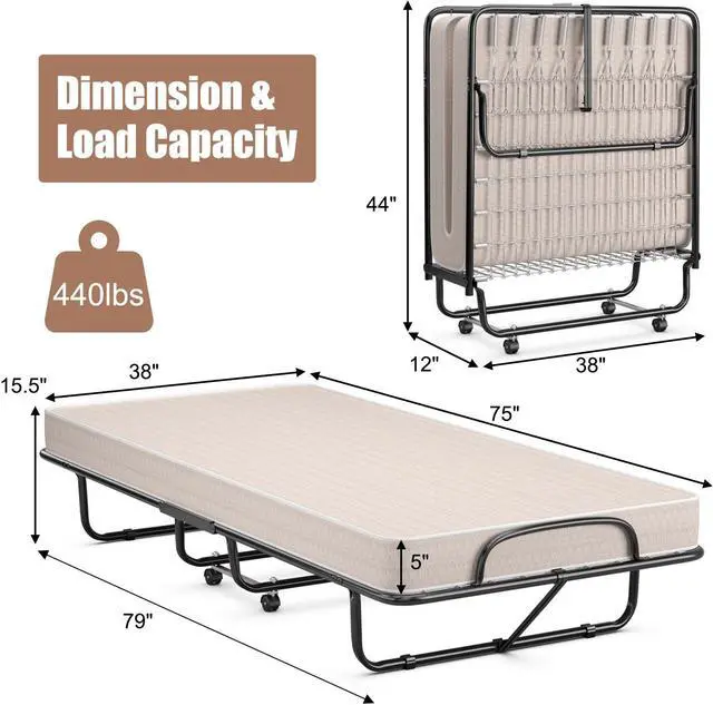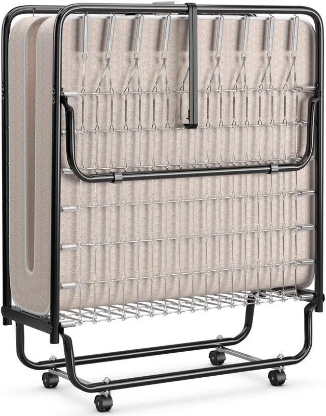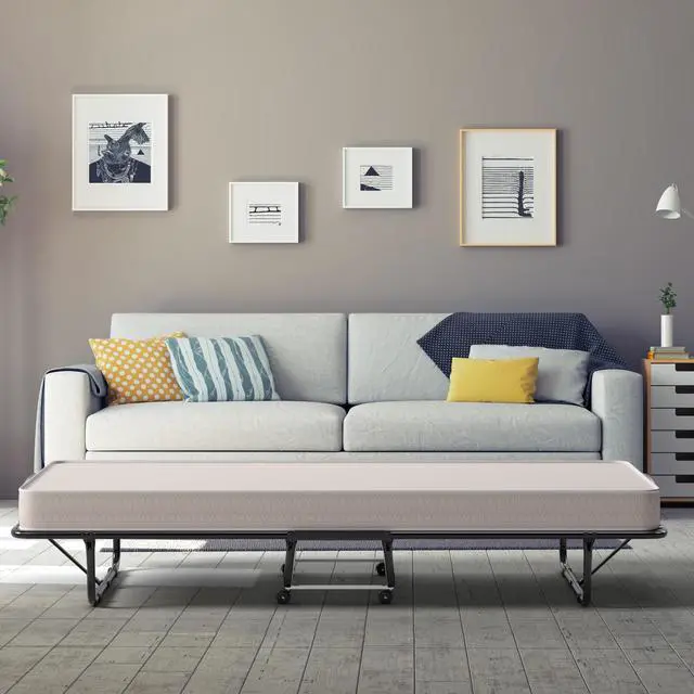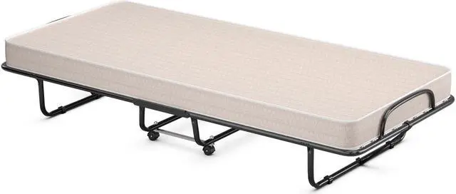 Bed Mattress for Extra Comfy: The rollaway bed comes with a cozy mattress that is filled with high-density memory foam. Besides, the 4" mattress is not easy to collapse when you roll over on it, ensuring a comfortable sleep experience. The mattress retainer on either side prevents the mattress from slipping.