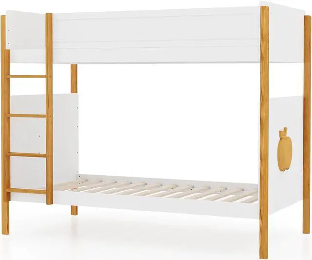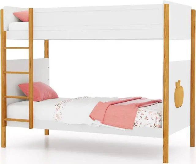 Adorable Appearance: The combination of unique apple decoration, white and honey colors creates a captivating contrast, making it an eye-catching piece that complements any room. The bunk bed enhances the style and functionality of kids' room, summer camp or youth hotel.