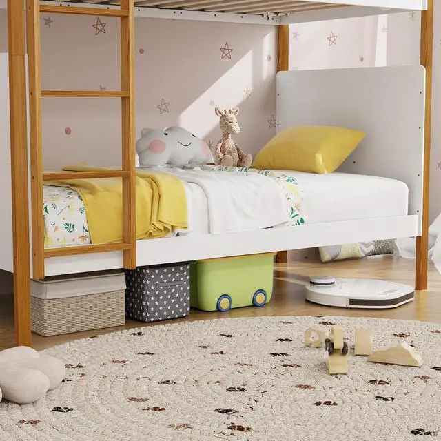 Safety Guardrails and Ladder: The bunk bed features 10.5" full-length guardrails to prevent accidentally falling and enhance safety. Meanwhile, 3-step ladder is securely mounted on the bed frame and provides easy access to the upper bed.