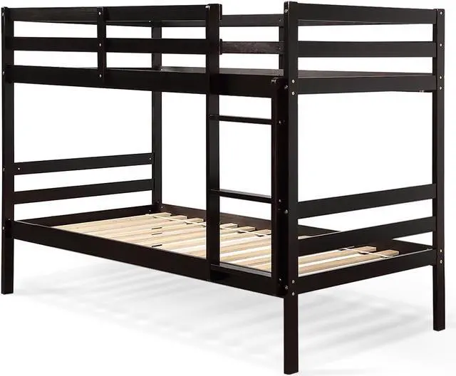 Modern and Timeless Wood Bunk Bed: The wood bunk bed is a perfect blend of outstanding quality and stylish appearance. Chic and simple twin over twin bed will never be out of style in any type of room. Slat design of headboard and foot board add beauty to bunk bed. Creating fun and living room for children.
