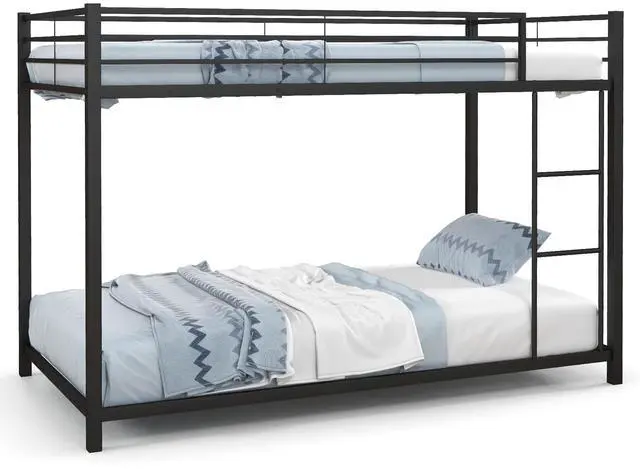SlickBlue Low Profile Twin Over Twin Metal Bunk Bed with Full-length Guardrails