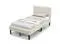 -Clean lines and gray/beige upholstery add charm to the headboard