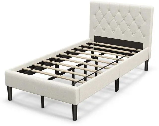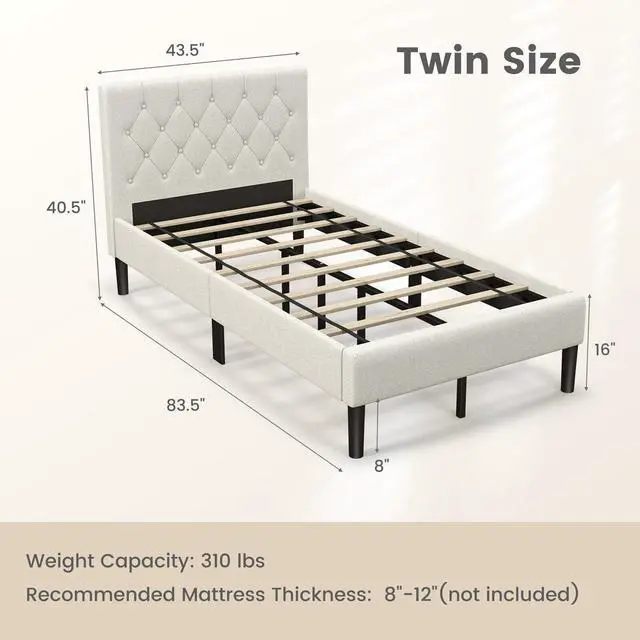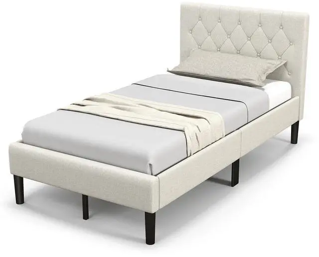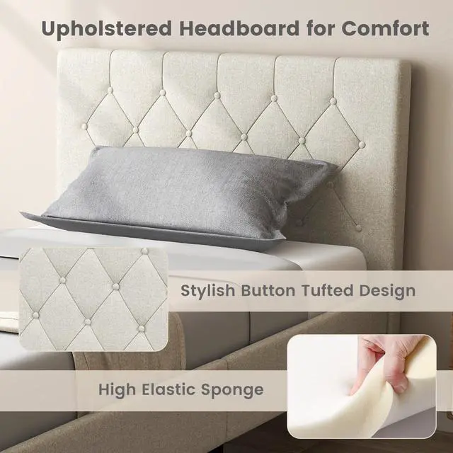 Unique and Aesthetic Appearance: This platform bed with modern headboard is an elegant and practical addition to any bedroom. More, stylish button tufted design and gray/beige upholstery make up a high-quality and understated appearance.