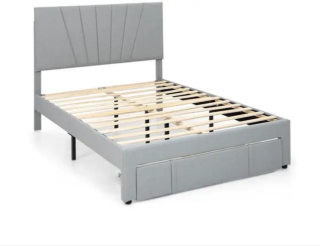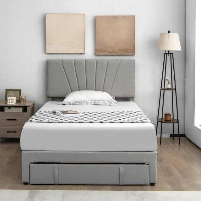 Adjustable and Upholstered Headboard: The headboard can be adjusted to 2 different heights (45"/48.5") to suit your mattress better and the recommended mattress thickness is 8"-12" (not included). The upholstered headboard in gray linen fabric is filled with high density sponge for optimal comfort.