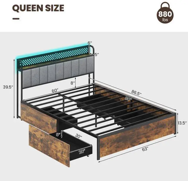 Convenient Charging Station: The twin/full/queen bed comes with a built-in power strip, making it easy to keep all your devices fully charged. Positioned ideally on the storage headboard, it supports a clutter-free environment by your side.