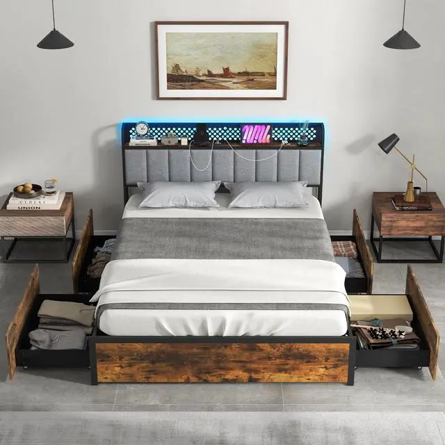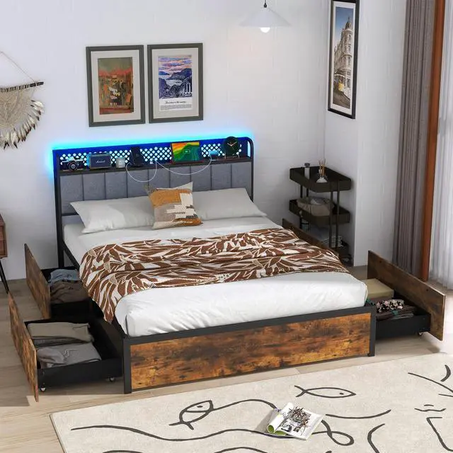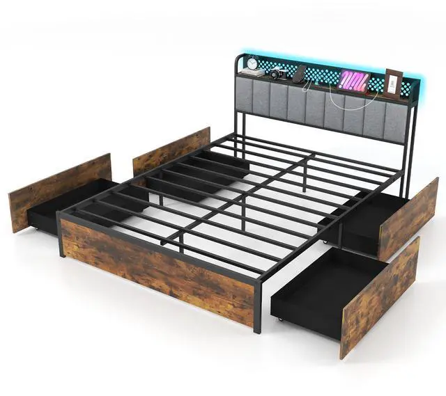 Ample Storage Space: Maximize the functionality of your bedroom with four spacious storage drawers slide out from the underneath the bed. Additionally, the headboard shelf and metal pegboard are great for decorative items.
