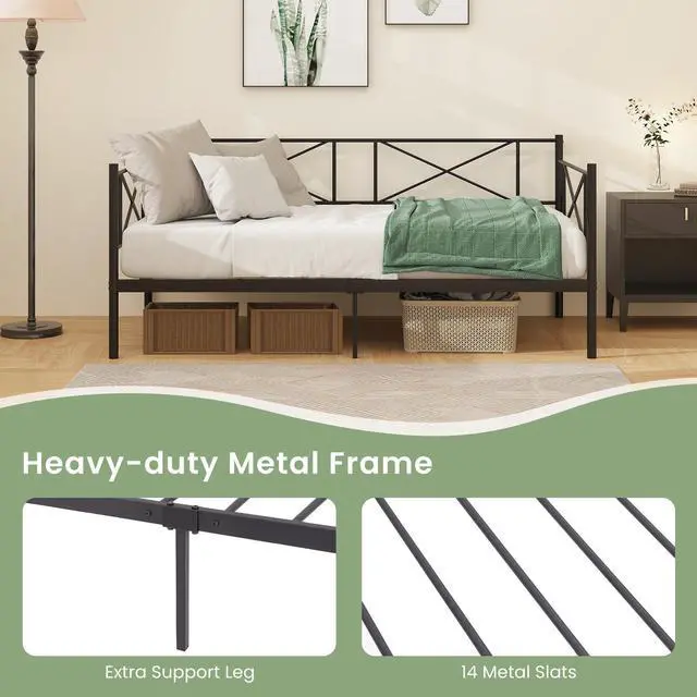 2-in-1 Versatile Design: The twin metal daybed effortlessly transitions from a cozy sofa to a comfortable sleeper bed. It is perfect for small spaces, guest rooms, or living areas, enhancing functionality without compromising on style.