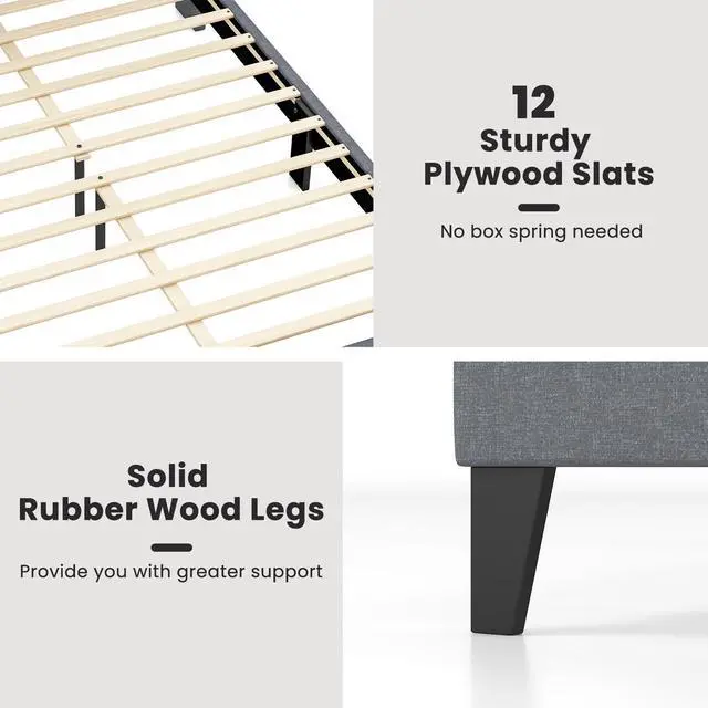 Enhanced Stability: Sleep soundly knowing that our bed frame is engineered for the ultimate in stability. From the solid rubber wood legs to the strong center support, every detail is crafted to provide you with a sense of security and peace of mind.