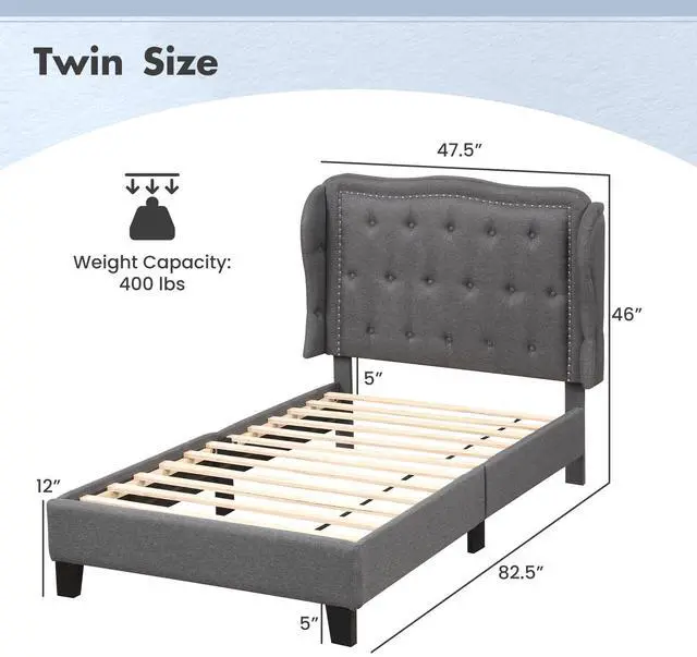 Say Goodbye to Box Springs: This twin size bed frame is designed with standard mattresses, eliminating the need for a box spring and making your bedding setup a breeze. Overall Dimensions: 82.5" x 47.5" x 46" (L x W x H).