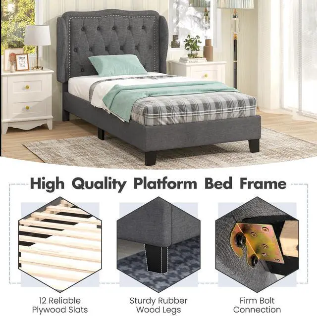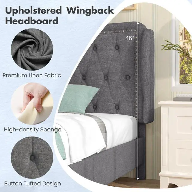Chic Wingback Design: This elegant bed frame features a wingback headboard that adds luxury and style to your bedroom. Crafted with button-tufted detail, the headboard creates a focal point that blends classic and contemporary design elements.