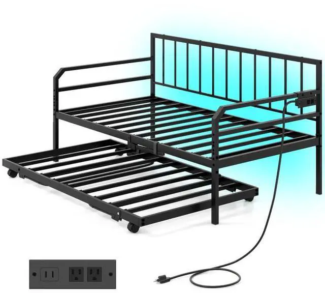 Convenient Charging Station: The metal daybed is equipped with 2 outlets, 1 USB port and 1 type-C port, allowing convenient charging of your phone or tablet nearby. The built-in charging station eliminates the need to search for a power source.
