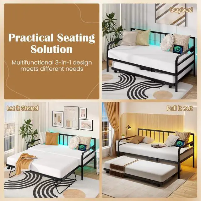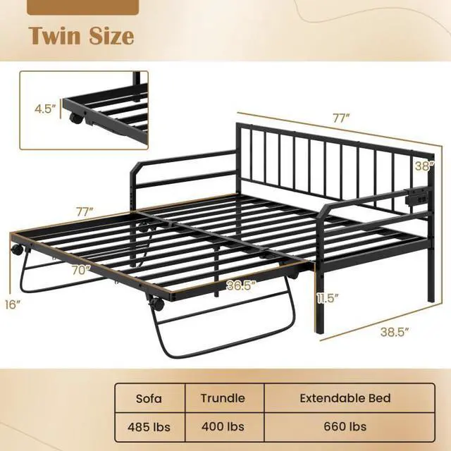 -Twin size metal daybed with pop up trundle is a practical seating solution