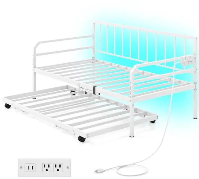 Convenient Charging Station: The metal daybed is equipped with 2 outlets, 1 USB port and 1 type-C port, allowing convenient charging of your phone or tablet nearby. The built-in charging station eliminates the need to search for a power source.