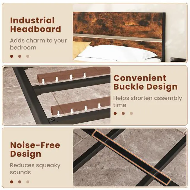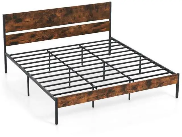 Industrial Charm: Featuring an industrial wooden headboard and footboard, this bed frame is a standout piece that elevates any bedroom decoration. This blend of rustic wood and sleek metal frame adds sophistication and charm to any living space.