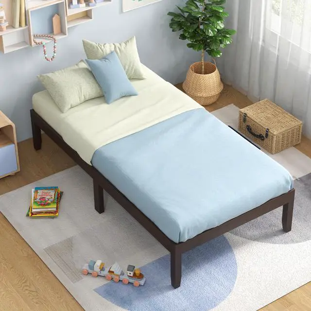 Sturdy Slats Support: This Twin size platform bed is made of 12 robust plywood slats, which combines great strength with durability. The slatted bed frame also provides reliable mattress support, eliminating the need for a box spring.
