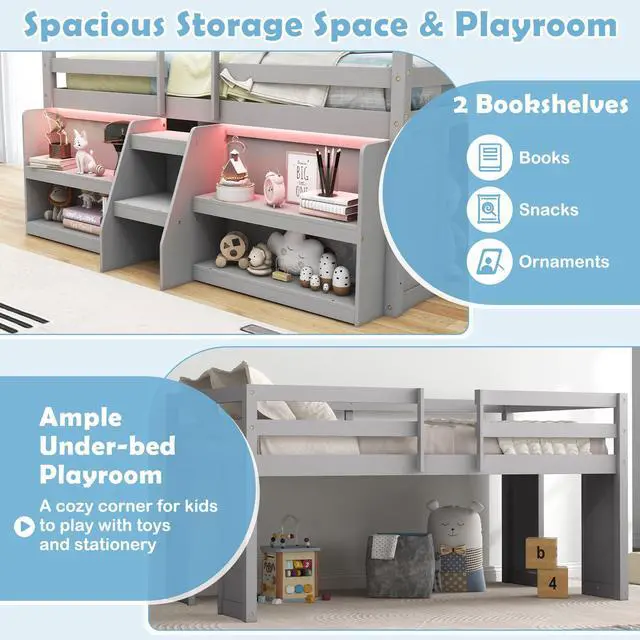 Customizable LED Lights: The low loft bed features a unique LED light system that can be easily controlled via a remote, allowing for a personalized lighting experience to suit different moods and needs. Just set the color, mode, and adjust the speed and brightness!