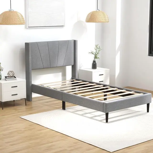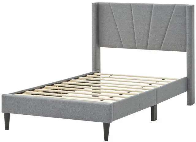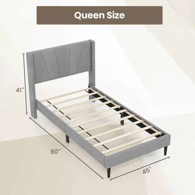 Chic Wingback Design: This upholstered bed frame boasts a sophisticated wingback headboard that adds a touch of modern elegance to any bedroom. Plus, the comfy headboard also offers comfortable support for reading or relaxation.