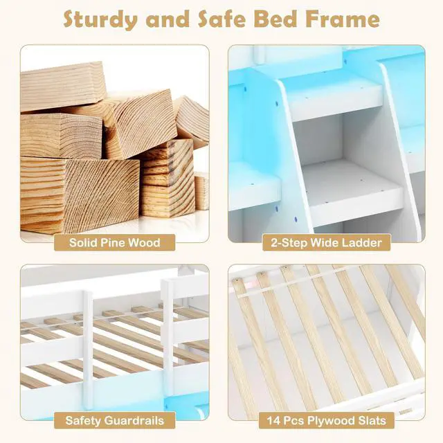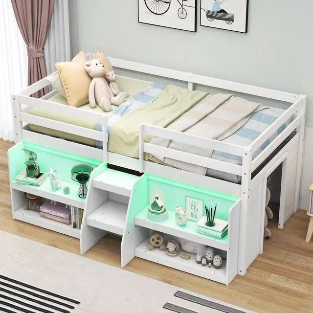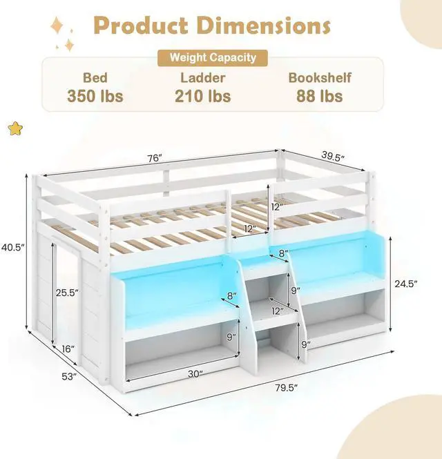 Customizable LED Lights: The low loft bed features a unique LED light system that can be easily controlled via a remote, allowing for a personalized lighting experience to suit different moods and needs. Just set the color, mode, and adjust the speed and brightness!