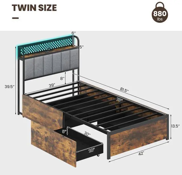 Convenient Charging Station: The twin/full/queen bed comes with a built-in power strip, making it easy to keep all your devices fully charged. Positioned ideally on the storage headboard, it supports a clutter-free environment by your side.