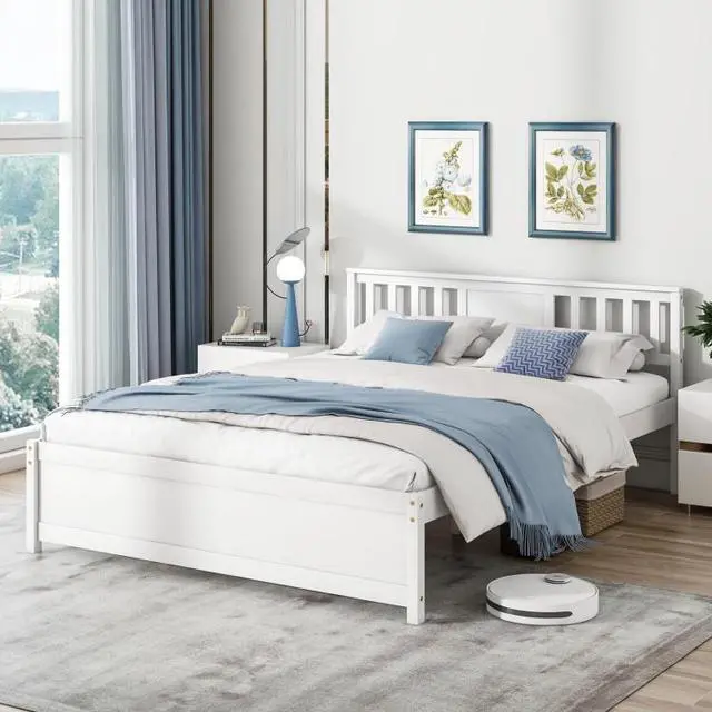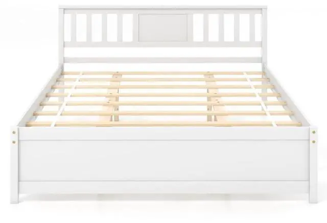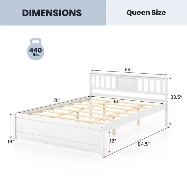 Solid Wooden Construction: Crafted from durable wooden materials, the queen bed ensures long-lasting strength and stability. The bed platform that consists of 8 plywood slats provides reliable support for mattress.
