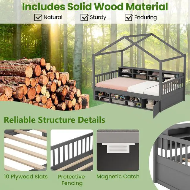 Spacious Bedside Storage: The integrated bedside shelf includes 8 storage cubes and a convenient countertop. Therefore, the house bed can keep kid's essential items readily accessible and perfectly organized.