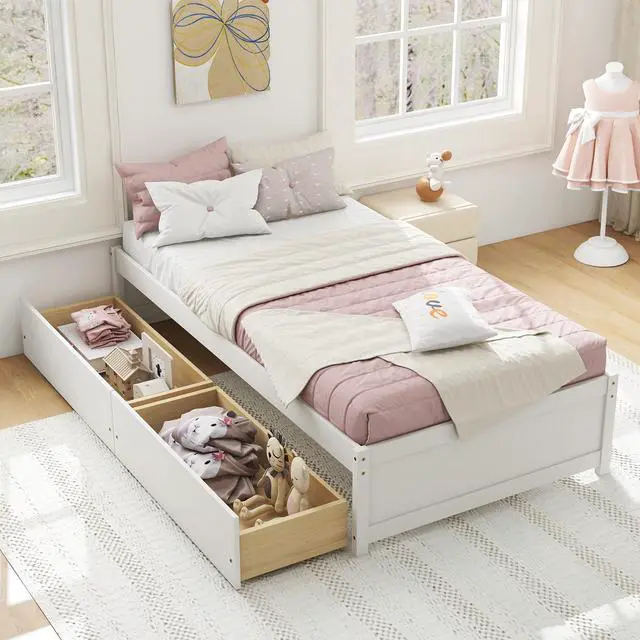 Practical Storage Drawers: This platform bed features 2 drawers on flexible wheels, making them easy to slide in and out. Ideal for storing bedding, clothes, and other essentials, these drawers help maximize your space while keeping your belongings organized.