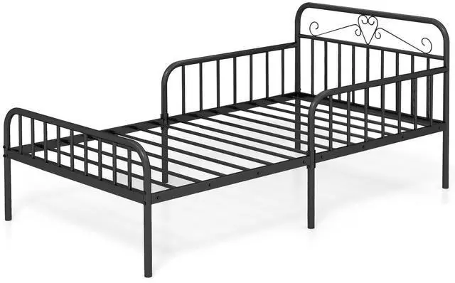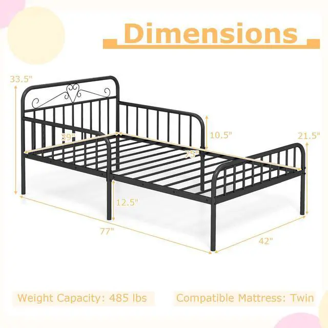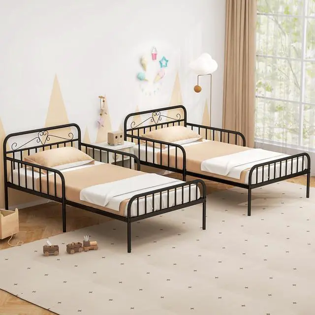 Modern Headboard & Footboard Design: Featuring a sleek metal headboard and footboard with clean lines, this twin bed adds a touch of contemporary style to any bedroom. It offers both aesthetic charm and functional support for pillows and cushions.