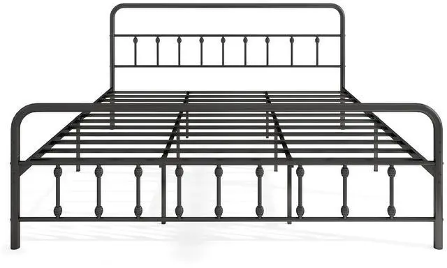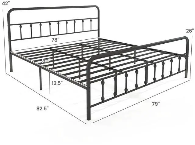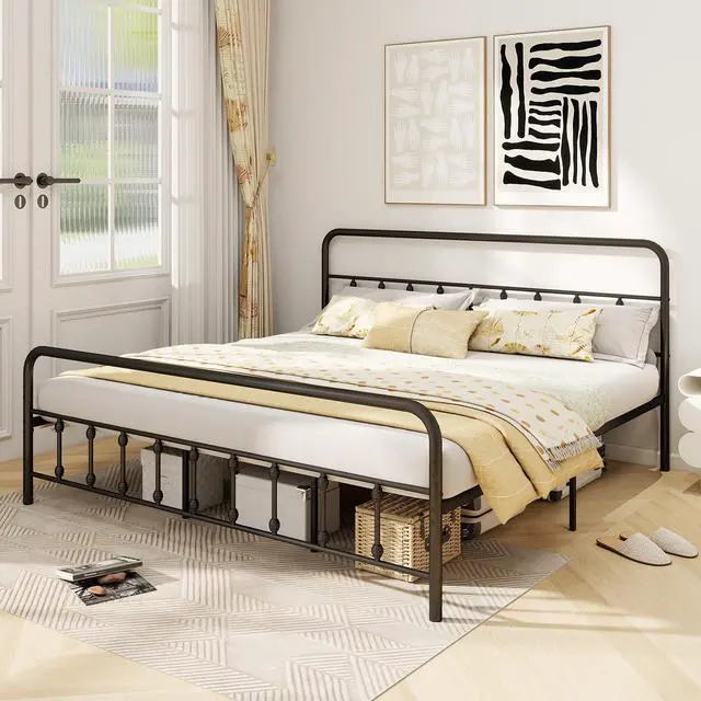 Victorian Elegance: Featuring a beautifully crafted Victorian-style headboard and footboard, this metal platform bed exudes timeless charm. The gracefully curved lines and rounded corners not only elevate the design but also add a layer of safety by preventing accidental bumps.