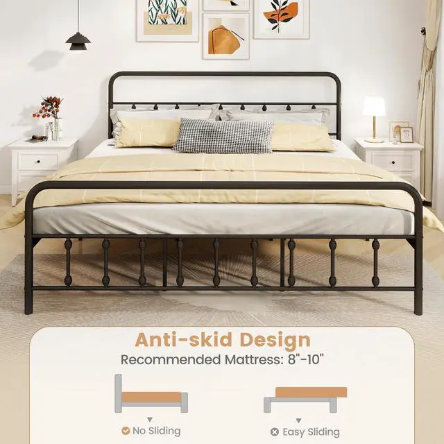 No Box Spring Required: The anti-skid mattress foundation eliminates the need for a box spring and is compatible with standard 8"10" mattresses. Enjoy a supportive, streamlined sleep setup with less bulk.
