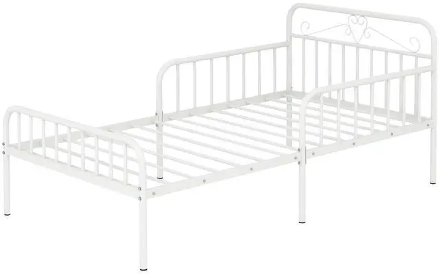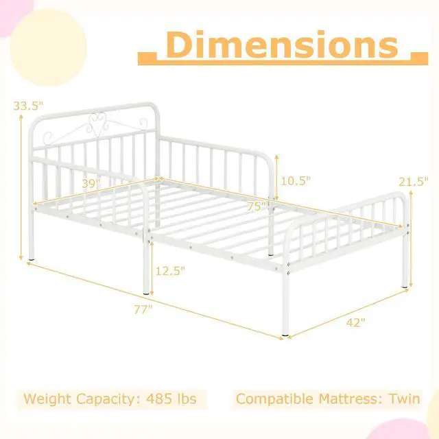 Modern Headboard & Footboard: This twin-size metal bed features a sleek headboard and footboard that bring clean lines and contemporary charm to any bedroom, enhancing both style and comfort.