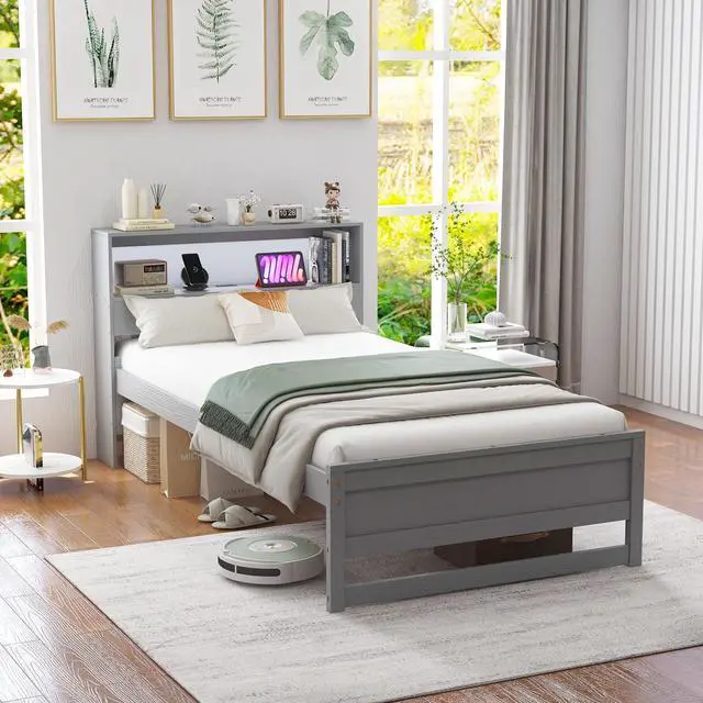 Storage Headboard with Charging Station: Designed for modern convenience, the platform bed includes a built-in charging station with 1 USB port and 1 Type-C portperfect for keeping phones, tablets, or reading devices powered overnight. The integrated shelf offers space for books, glasses, or nighttime essentials.