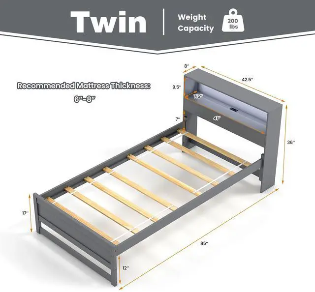 Spacious Under-bed Storage: With 12 inches of clearance beneath the frame, this twin-size bed provides ample room to stow seasonal clothing, storage bins, shoes, or other itemskeeping clutter out of sight and your room organized.