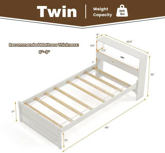 Spacious Under-bed Storage: With 12 inches of clearance beneath the frame, this twin-size bed provides ample room to stow seasonal clothing, storage bins, shoes, or other itemskeeping clutter out of sight and your room organized.