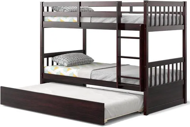 3-in-1 Convertible Design: Easily transforms from a space-saving twin-over-twin bunk into 2 separate twin beds plus a trundleperfect for growing families or hosting guests. The pull-out trundle glides smoothly on caster wheels, ensuring convenient use without damaging your floors.