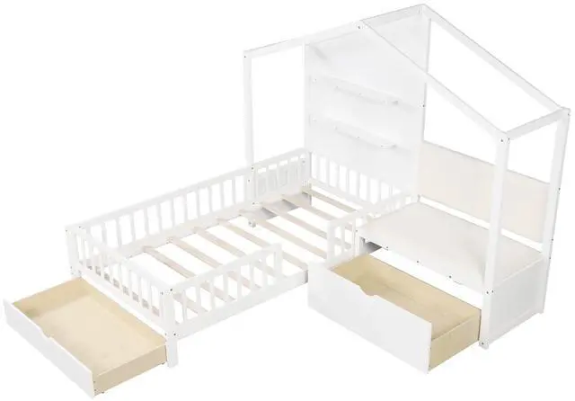Smart Storage for Kids Essentials: Dual floating wall shelves and roomy under-bed drawers offer ample storage for books, bedding, toys, and morekeeping the room organized and clutter-free.