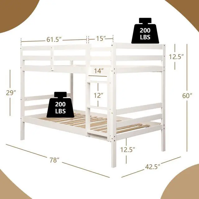 Compact Twin-Over-Twin Layout: Ideal for space-conscious bedrooms, this bunk bed accommodates two twin-size mattresses (not included) while maintaining a compact footprint. The under-bed space offers bonus room for toy storage or seasonal items.