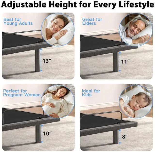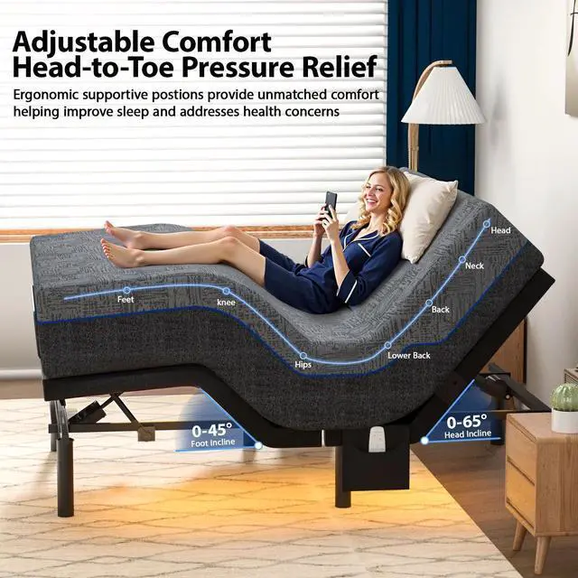 Independently Adjustable Head & Foot Sections:Easily raise or lower the head (045°) and foot (065°) areas independently or simultaneously to find your ideal position for reading, relaxing, or sleeping. Includes a one-touch Zero Gravity mode that improves circulation and reduces pressure on your back and legs.