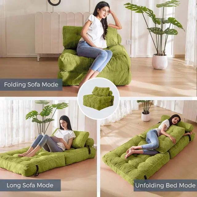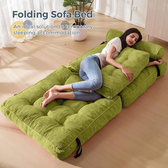 Durable Fabric: Crafted from premium corded fabric, this material offers a unique visual and tactile experience, elevating the ambiance of your living space. The size of the folding sofa bed is about 33.5"x74.8", which would be tailored to provide comfortable seating or bed for one person