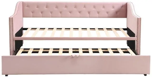 [Elegant design] Upholstered in carefully-selected velvet, in elegant gray/beige/pink, featured with backrest and two armrests, this daybed not only suits any home décor, but is timeless in its design. The soft backrest and armrests creates coziness, while the single color of the design creates versatility.