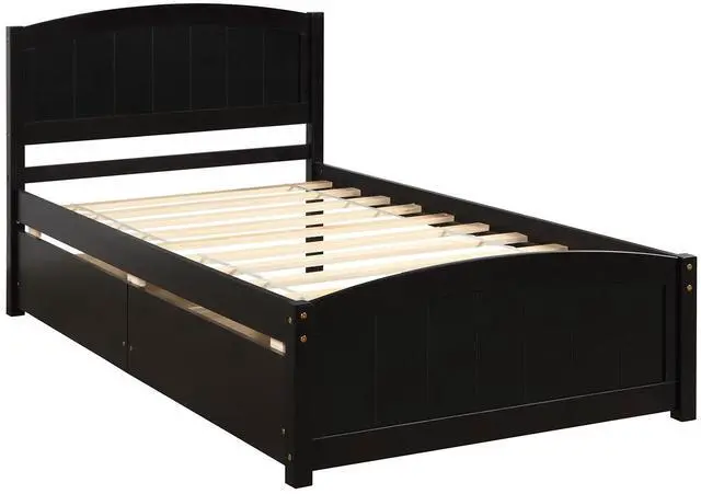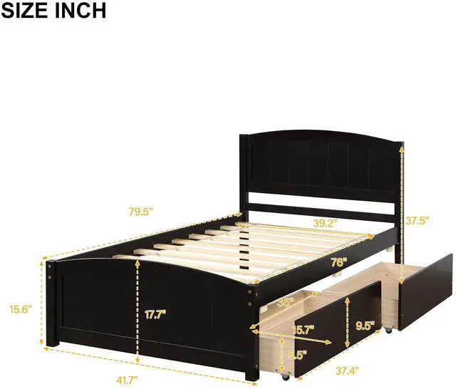 [Elegant design] This Wood Platform Bed with Two Drawers is designed with a clean silhouette and a hue of elegance. It gives any room a spark of style that's both modern and timeless.