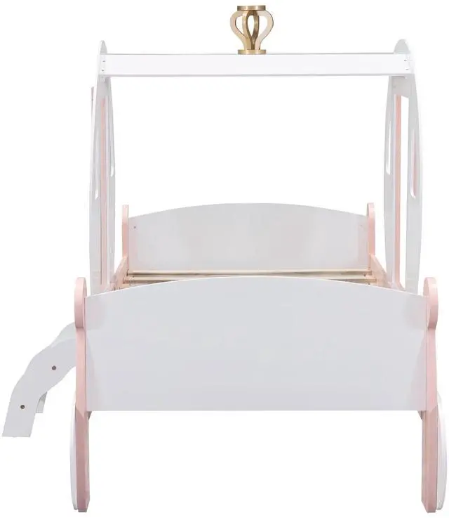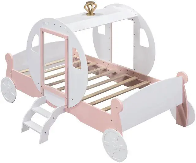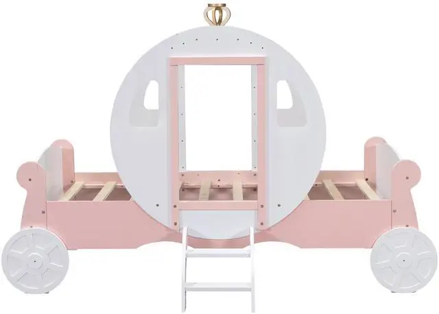 [Princess Carriage Bed] The whole bed is designed in the shape of a carriage. It is so cute that your girl will love it. It masterfully blends with all styles of home decoration, and helps to complete and enhance the look of any bedroom.
