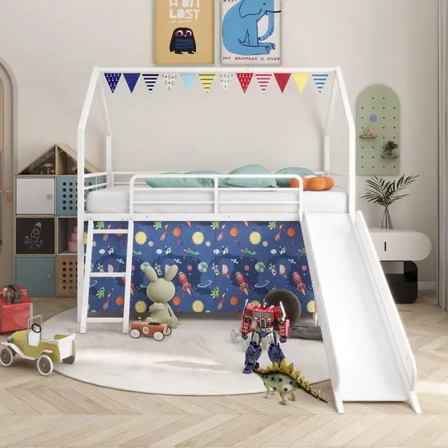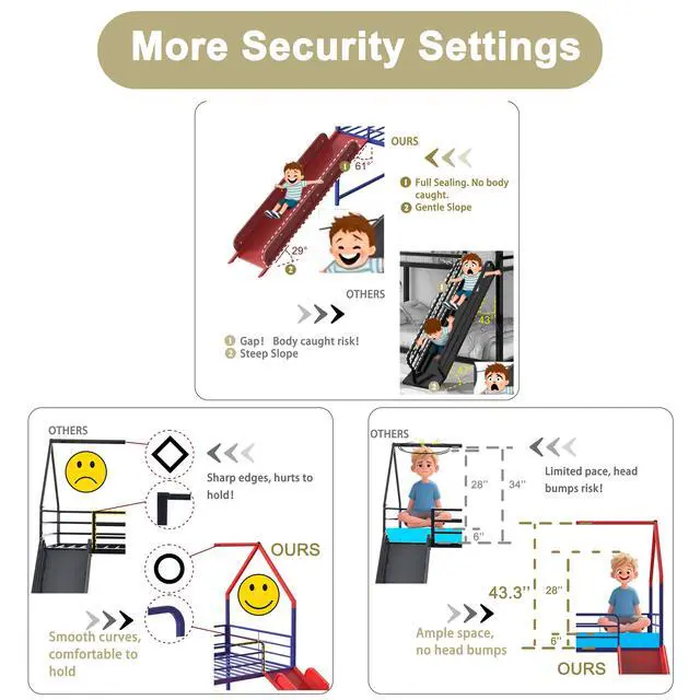 [Safety Design]: This bunk has highly reinforced guardrails to prevent your child from falling. A low height with a convenient ladder and slide makes it easy for children to climb up and down.