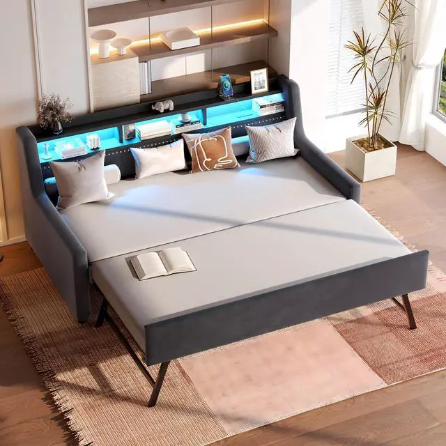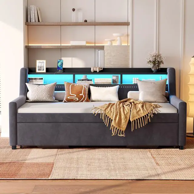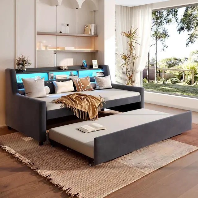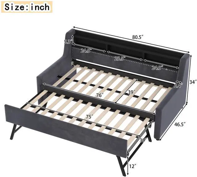 Design]: The twin size upholstered daybed comes with a convenient roll-out trundle, offering a clever solution for small living spaces or guest rooms.