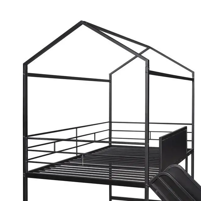 [Solid & Sturdy] The kids house bed frame is made of Metal with Painting, Metal slat provide strong support. The construction ensures both a lifetime of use, and a sturdy frame with a backrest which wont wobble.